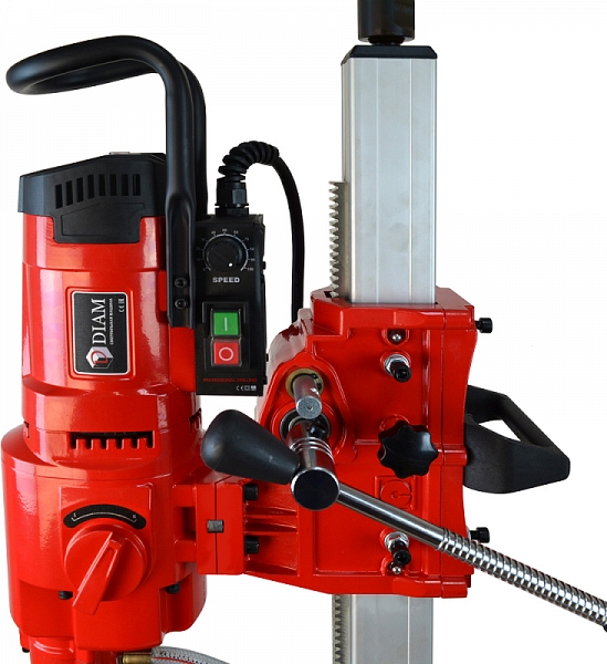 Алмазная сверлильная машина Diam ML-350/2NE (Диам МЛ-350/2НЕ) – мощная двухскоростная установка алмазного бурения с ненаклонной стойкой для сверления отверстий в бетоне и железобетоне Ø 20 – 300 мм, кирпичной кладке и других строительных материалах Ø 20 – 350 мм в строительстве, при электромонтажных работах, прокладке сантехнических и вентиляционных труб, отбора проб грунта, высверливании проемов в стенах, а также для частного ремонта.
