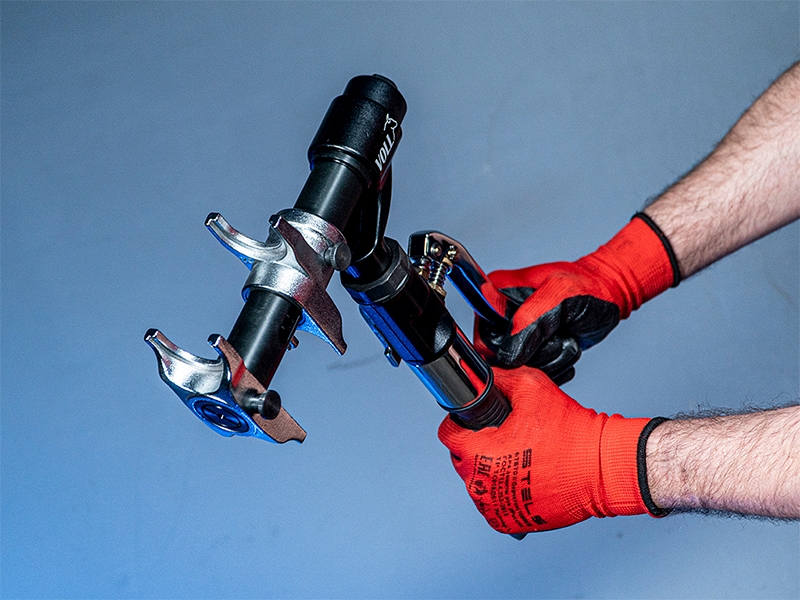 - Мощный гидравлический привод позволяет запрессовывать фитинги Ø до 32 мм с минимальным усилием от монтажника